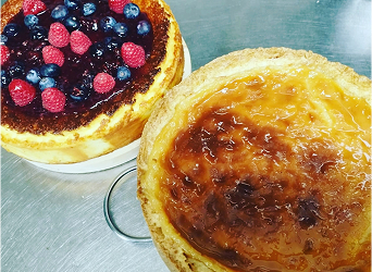 Cremoso interior sobre base de galleta, cubierto con mermelada de frutos rojos y fruta fresca. Un clásico moderno, lleno de color y contraste. Ideal para sorprender con un postre suave y vibrante.